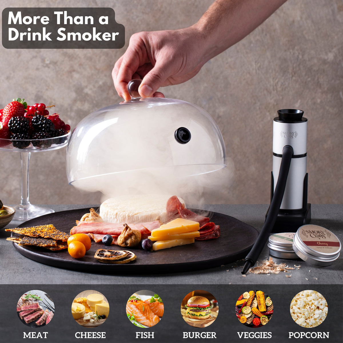 - Smoke Drinks & Foods - Smoky Crafts smoking gun food smoker can generate intense cold smoke which will be absorbed into food and drinks without adding any heat. Our portable smoker gun allows you to capture the smoke and use it to your favorite cocktails and variety of foods. This cocktail smoker lets you smoke drinks like bartender