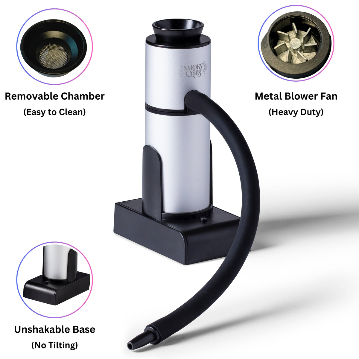 - Simple & Durable - Smoky Crafts cocktail smoker kit for drinks is built to last. The metal burning chamber and stainless steel fan can withstand heavy usage and will last long when properly cared for. Our smoke gun for cocktails is easy to assemble. Simply add wood chips into chamber of smoke device, press the button to start using the smoke infuser and light it up